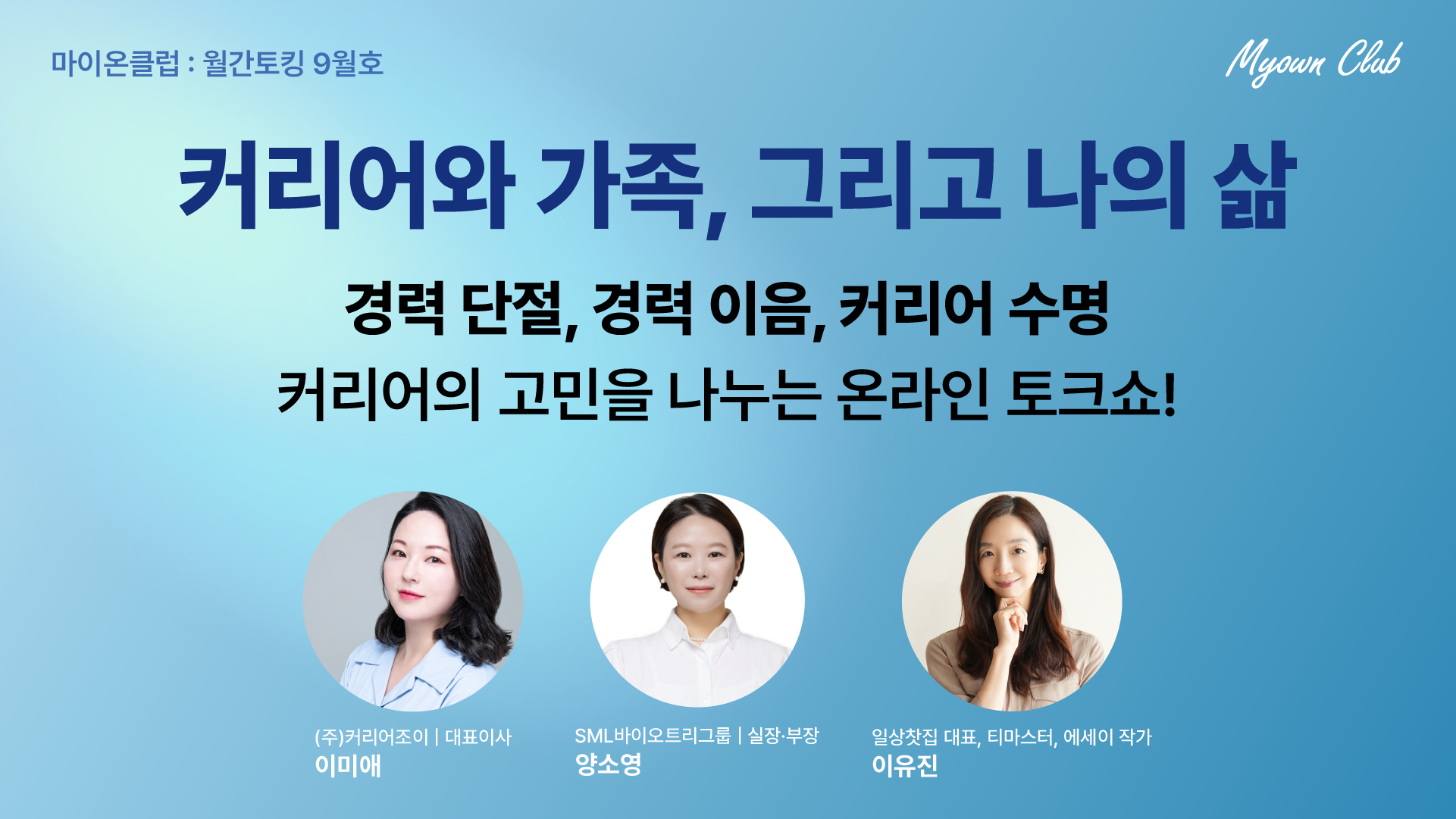 9월 월간토킹에선 경력 단절을 다양한 방법으로 극복한 연사님들의 이야기를 들려드립니다.