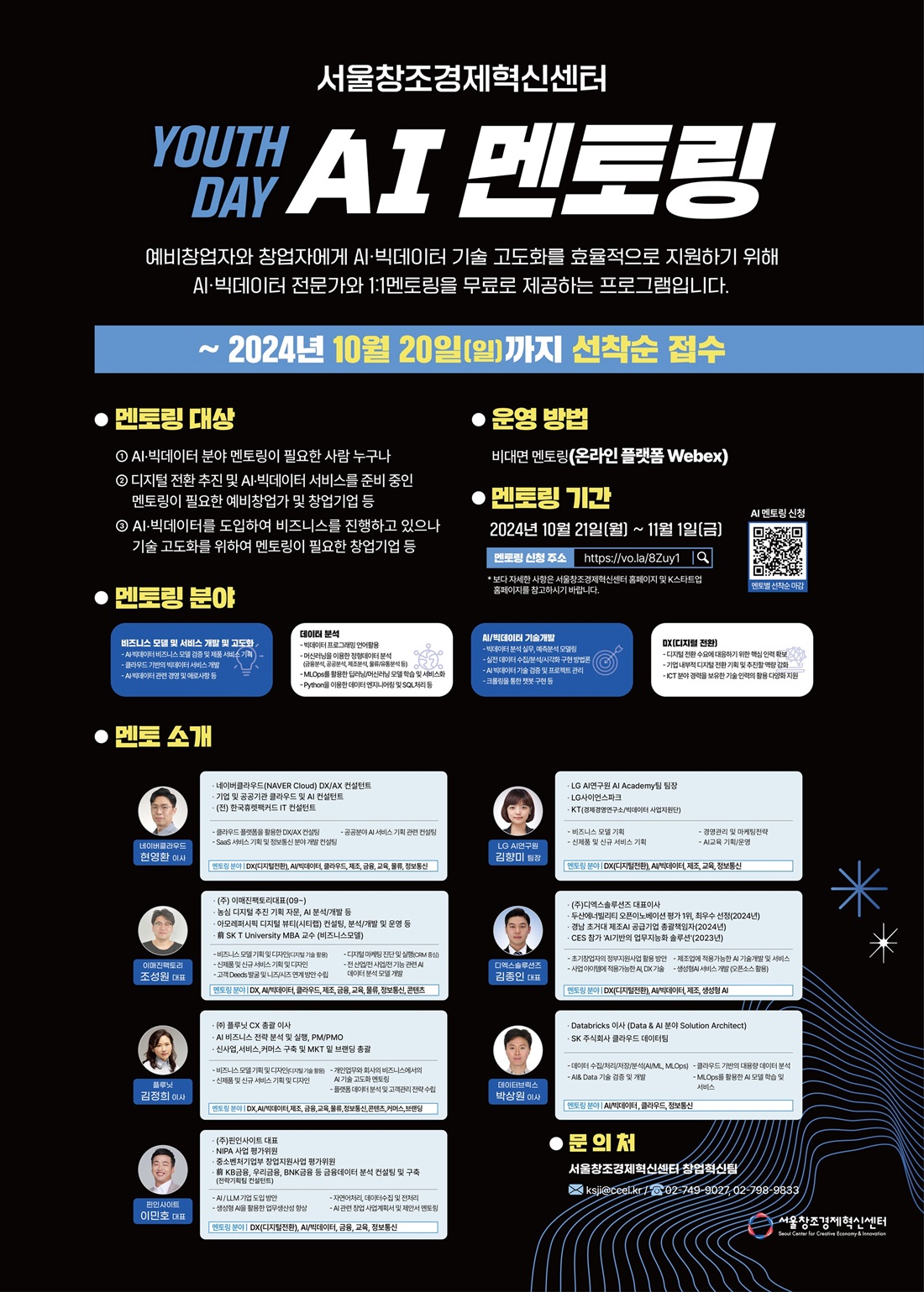 - 신청 : https://forms.gle/wszuzujU5L75Tizs8/ 멘토별 선착순 마감