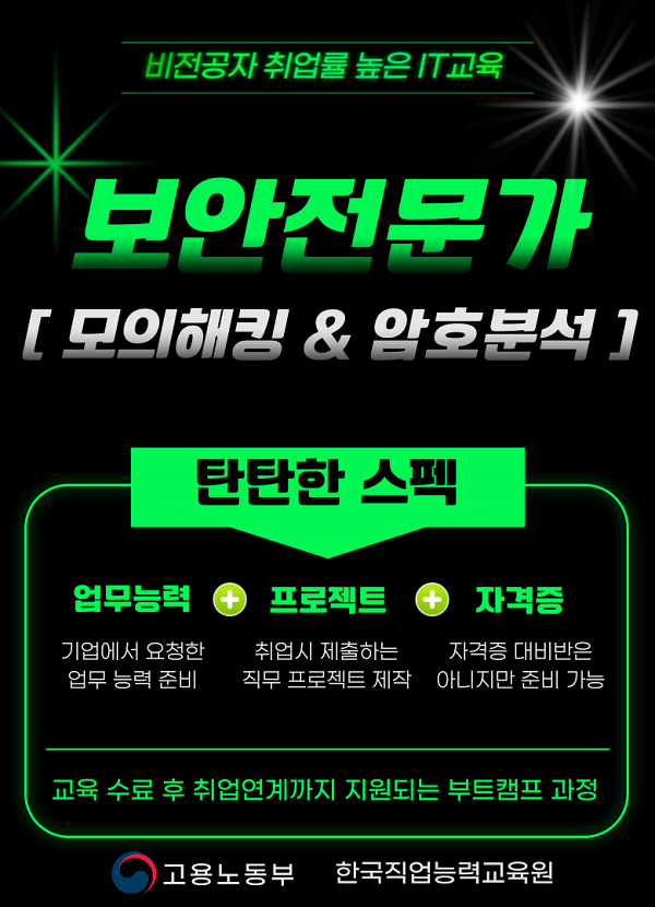 - 경기 안산 모의해킹 전문가 네트워크 서버 엔지니어 부트캠프 강의입니다.