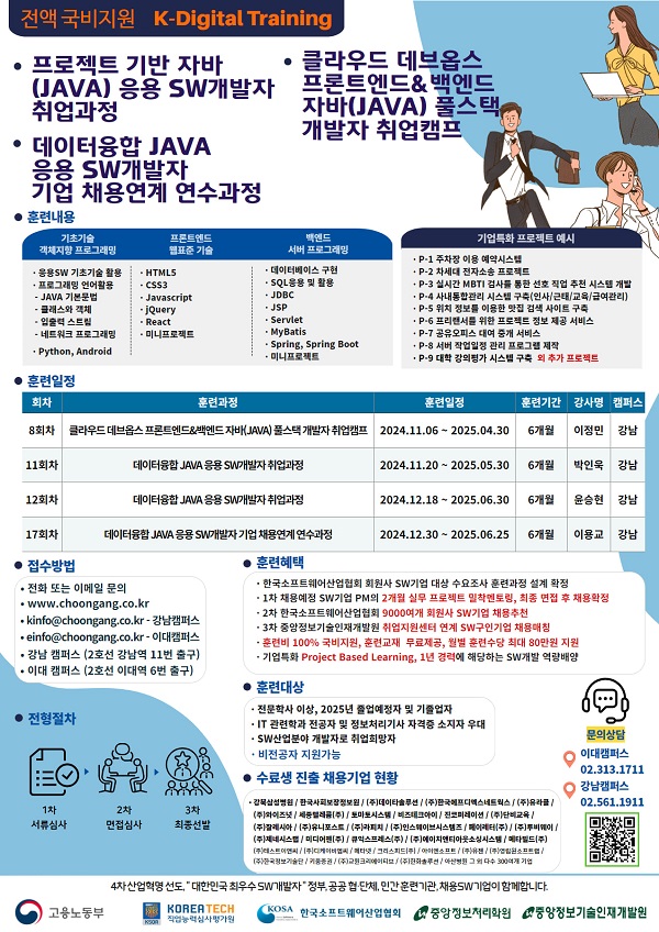 - 신청 : 홈페이지 : https://choongang.co.kr/html/sub03_07_n.php?#cjava