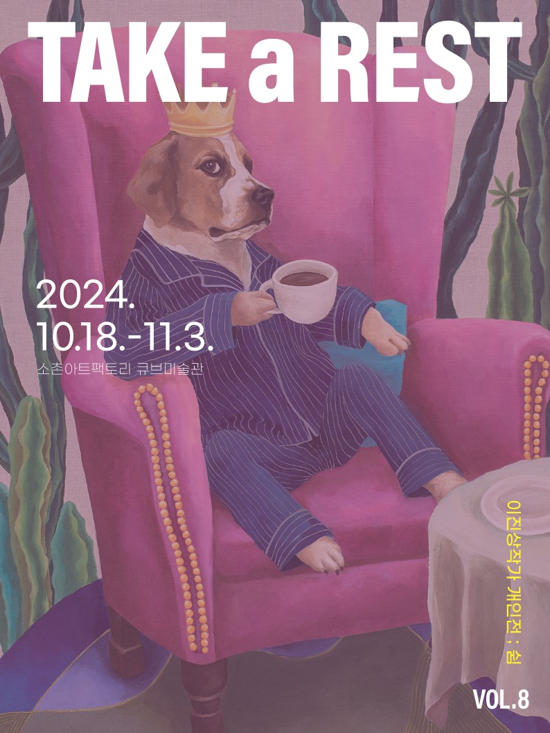 [TAKE a REST] ○ 행사개요 - 이번 전시에는 잠옷으로 갈아입고 의자에 앉아 있는 왕관을 쓴 반려동물들이 등장하는데 잠…, 전시,포럼,세미나,축제정보를 마이스포털 코드엠에서 확인할 수 있습니