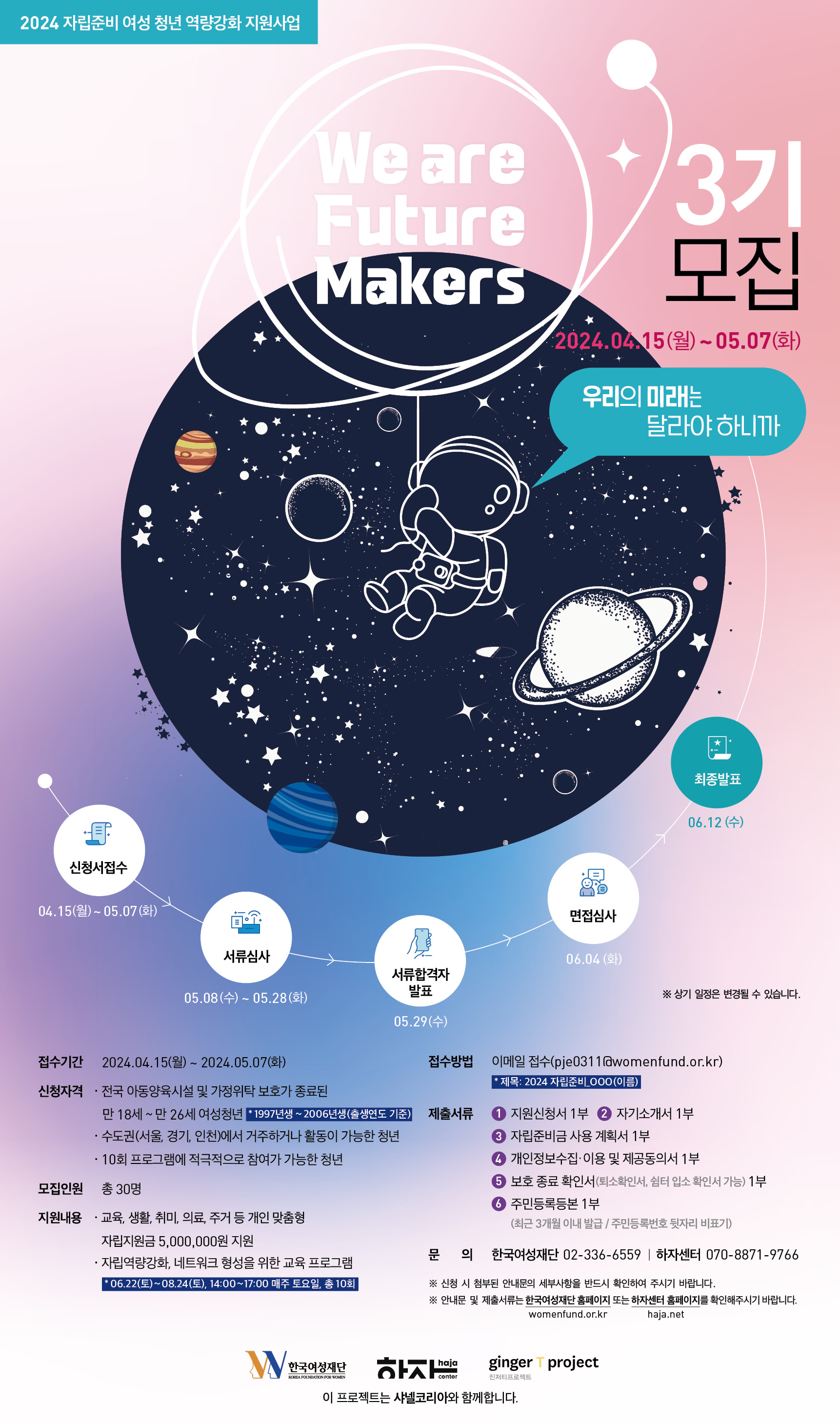 수 있도록 <2024 자립준비 여성 청년 역량강화 지원사업 : We are Future Makers>를