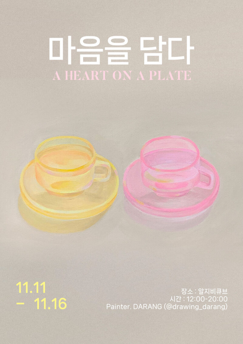 - 11월 11일부터 16일까지 홍대 알지비큐브에서 개인전 ‘마음을 담다’를 엽니다. 디지털