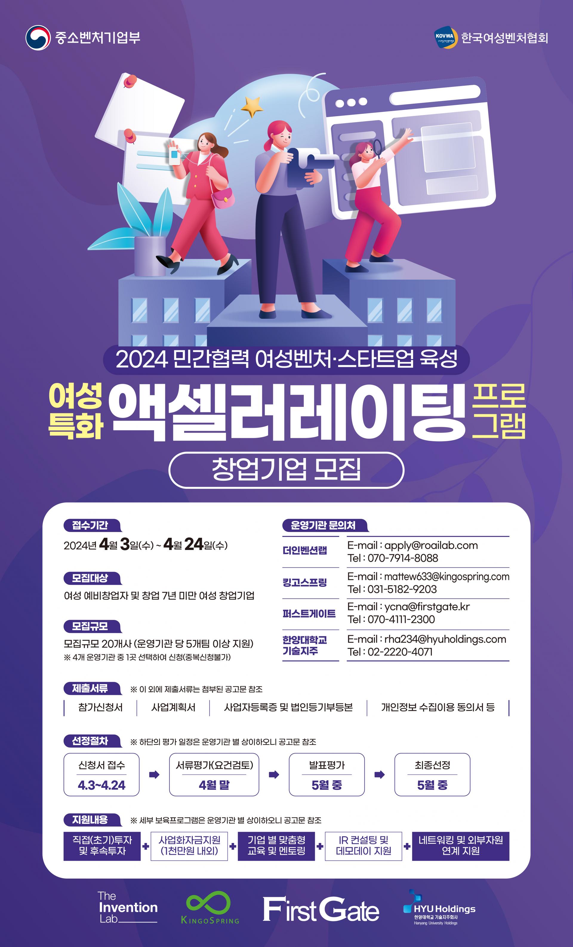 여성특화 액셀러레이팅 프로그램 ○ 사업개요 - 초기 창업자/ 창업 희망자의 유망 스타트업 발굴 및 체계적 창업 육성 프로그램을 …, 전시,포럼,세미나,축제정보를 마이스포털 코드엠에서 확인