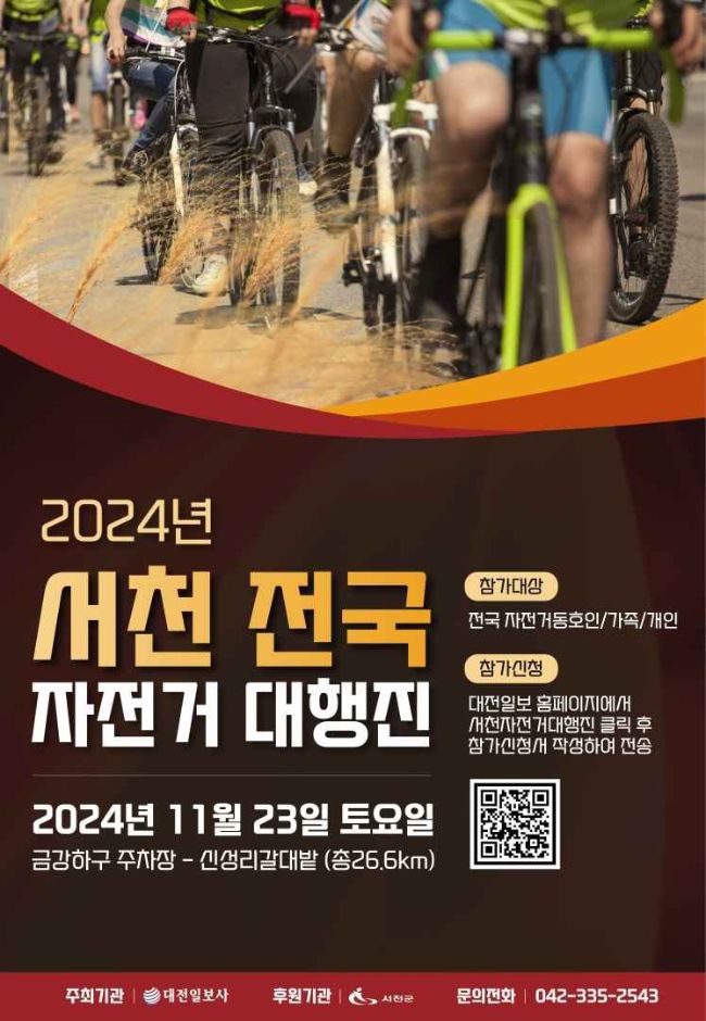 2024 서천전국자전거대행진 ○ 행사개요 - 전국 자전거 동호인 건강증진 및 생활체육저변확대를 위한 행사이다. 가을의 청취를 물…, 전시,포럼,세미나,축제정보를 마이스포털 코드엠에서 확인