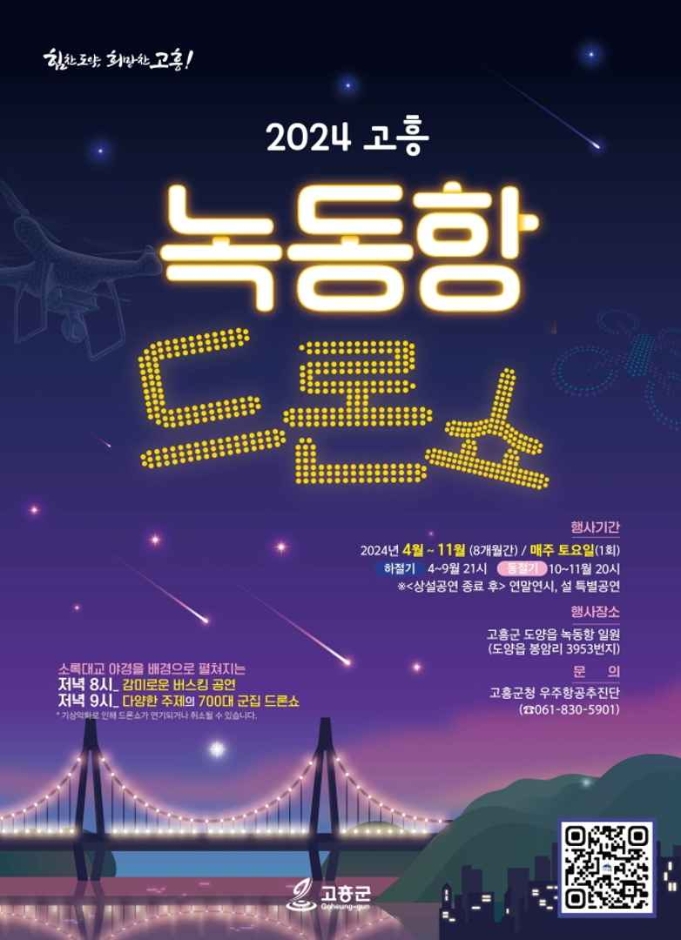 2024 고흥 녹동항 드론쇼 ○ 행사개요 - 천혜의 경관을 가진 고흥에서 매주 토요일 저녁, 밤하늘을 비출 드론쇼가 진행된다! …, 전시,포럼,세미나,축제정보를 마이스포털 코드엠에서 확인할 수