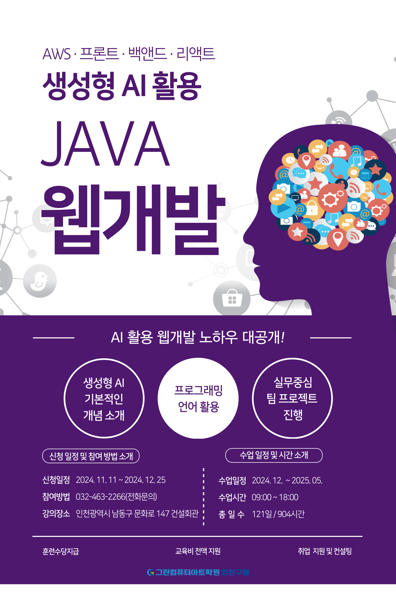 - 그린컴퓨터아트학원 인천구월점 <생성형 AI활용 JAVA 웹개발 프로젝트 1기>