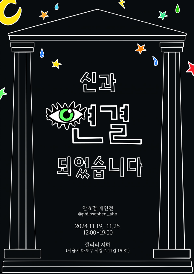 안효명 <신과 연결되었습니다.> ○ 행사개요 - 갤러리 지하에서 안효명작가님의 <신과 연결되었습니다.> 작품을 전…, 전시,포럼,세미나,축제정보를 마이스포털 코드엠에서 확인할 수 있습니다.