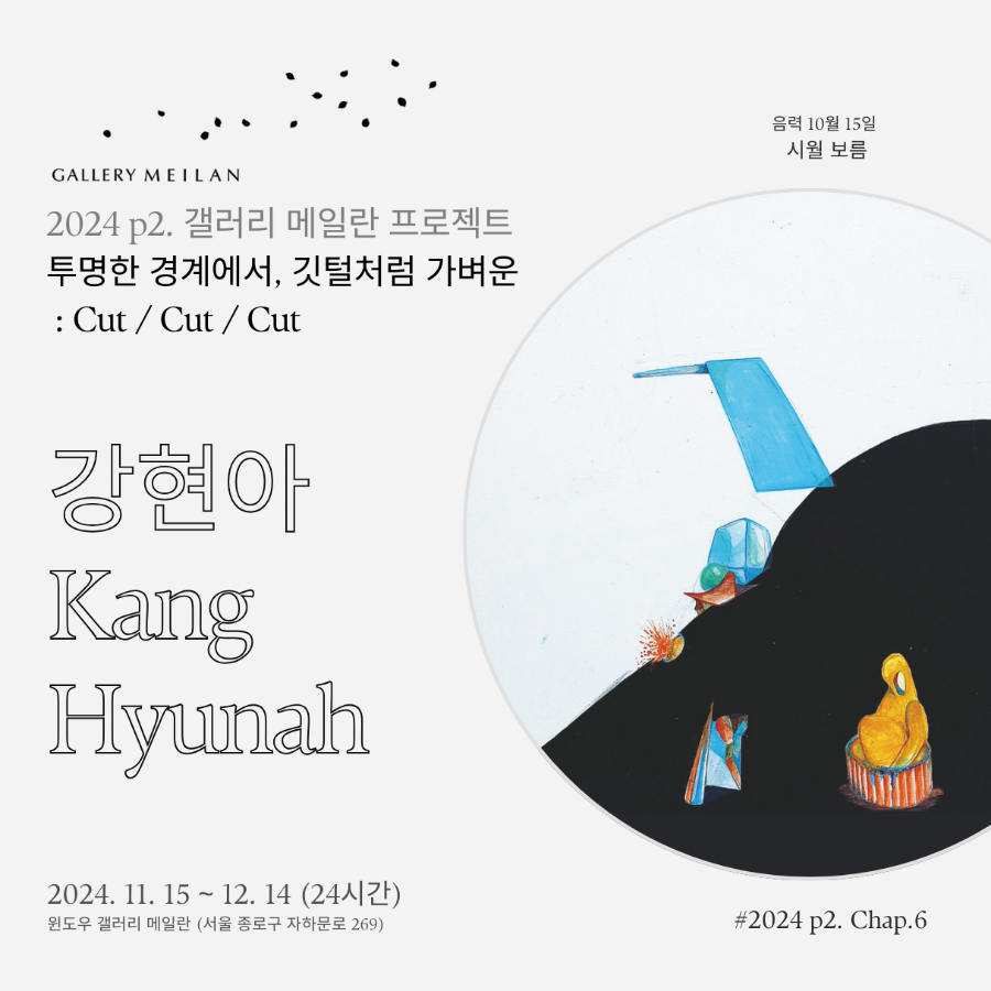 강현아 개인전 <투명한 경계에서 깃털처럼 가벼운: Cut/Cut/Cut> ○ 행사개요 - 갤러리 메일란에서 강현아 작가님의 …, 전시,포럼,세미나,축제정보를 마이스포털 코드엠에서 확인할 수 있습니다.