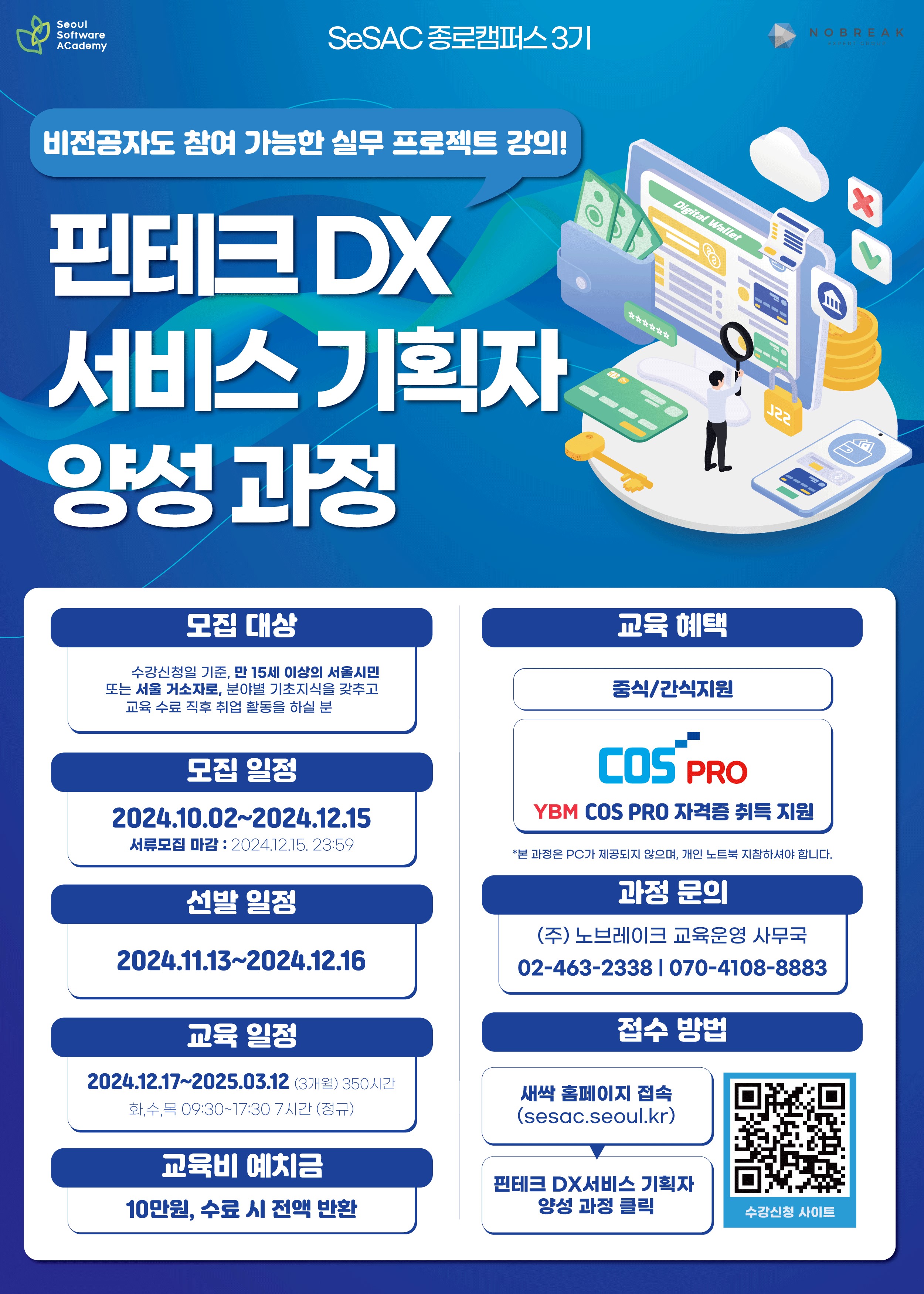 [새싹 SeSAC 종로 3기] 핀테크 DX 서비스 기획자 양성 과정 모집 중! 11월 26일까지!