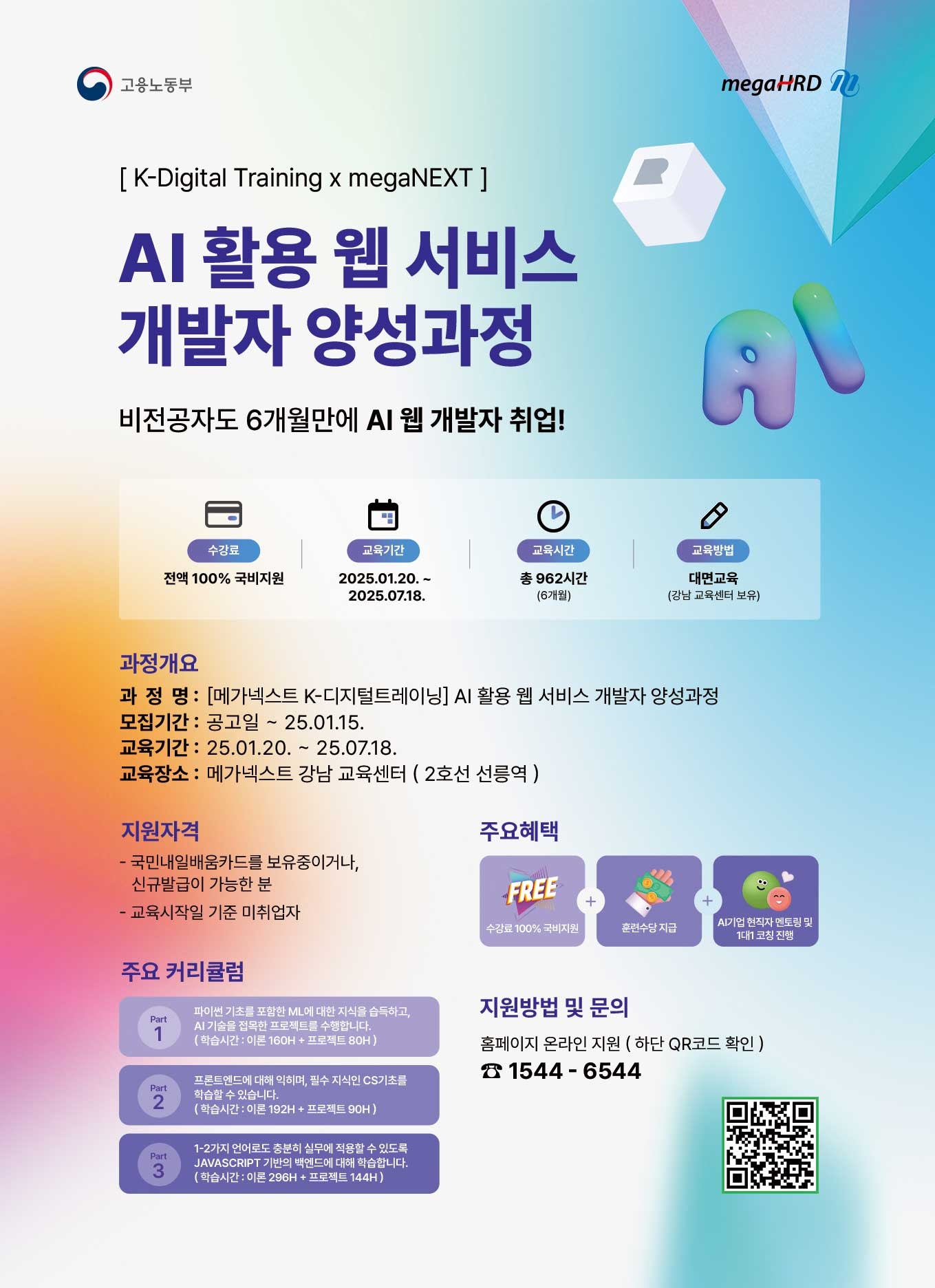 CODE:M - K-디지털트레이닝 X 메가넥스트가 함께하는 [AI활용 웹서비스 개발자 양성과정] 국비지원