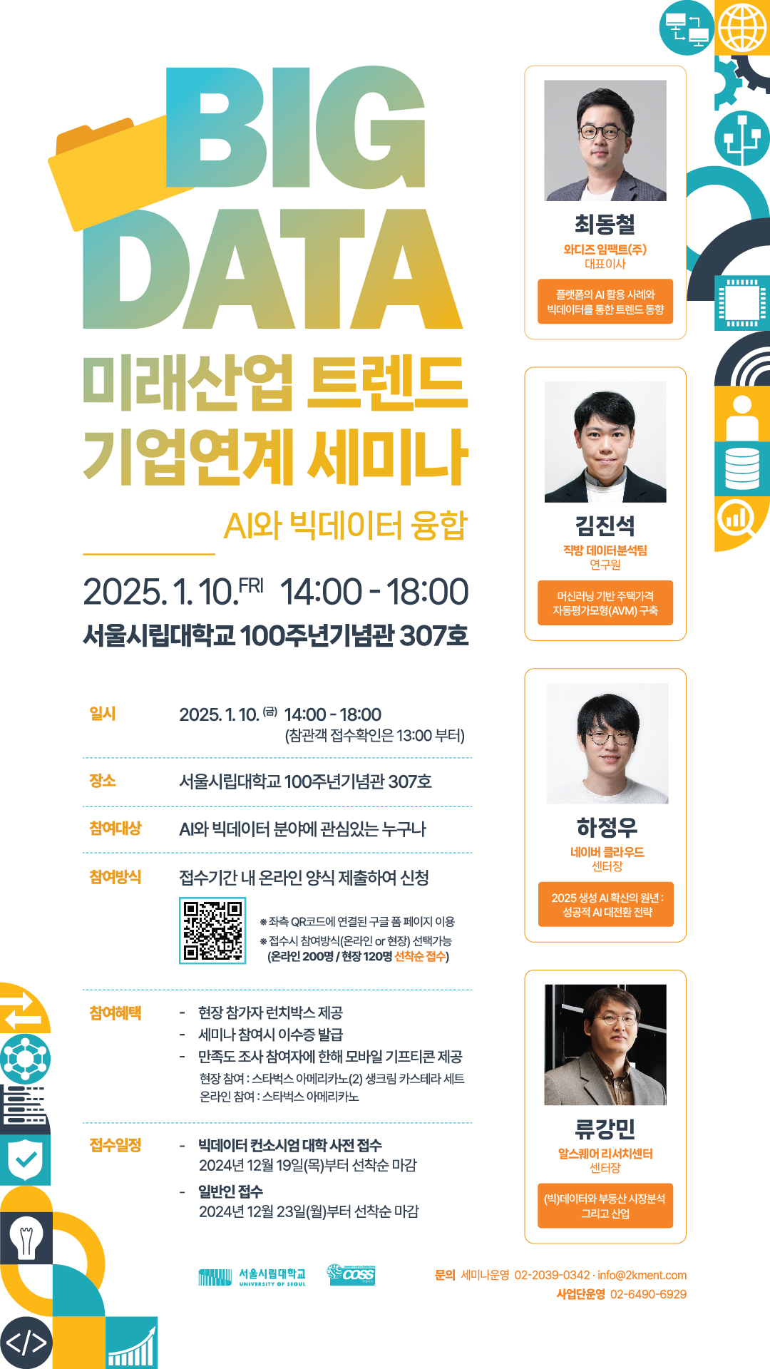- 행사 일정 : 2025년 1월 10일(금) 14:00 ~ 18:00 (등록 및 접수 / 런치 배포: 13:00 ~ 14:00, 사전 등록자에 한함)