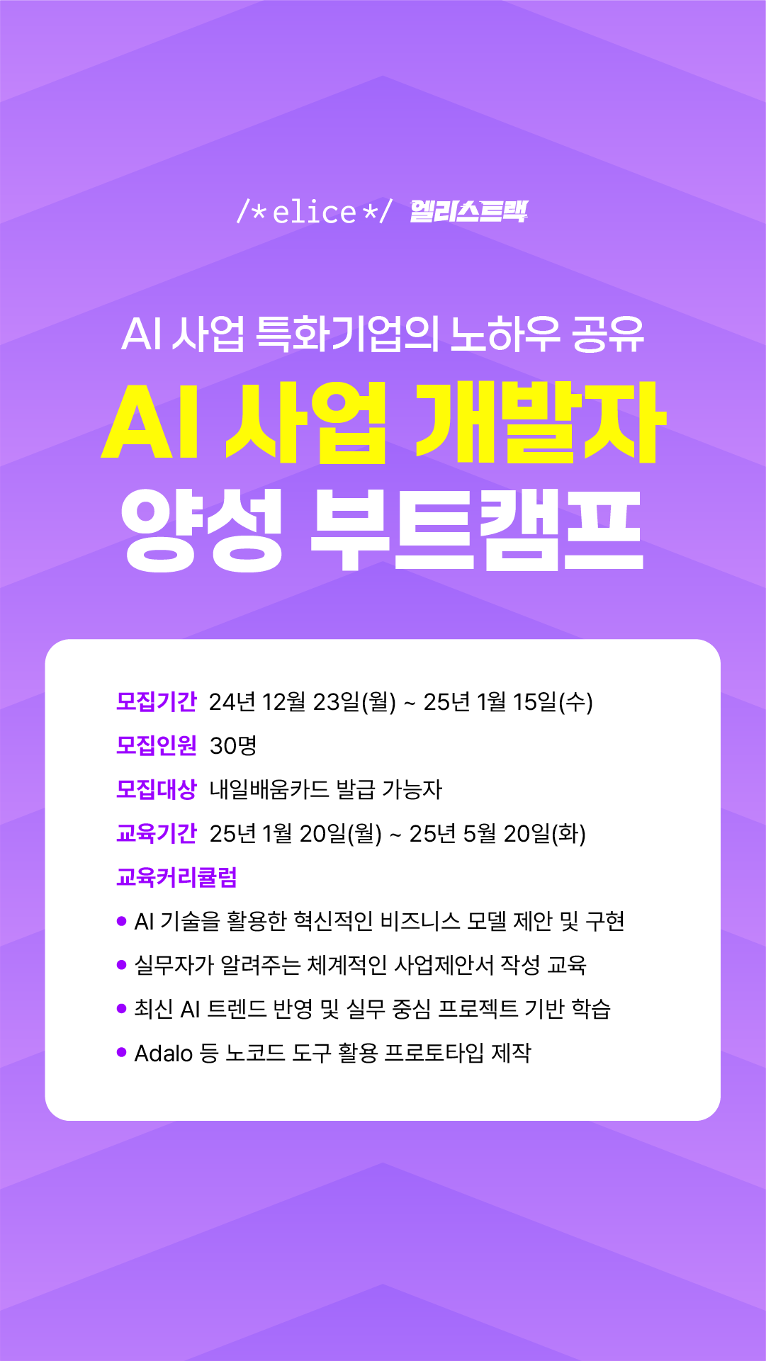 - [전액 국비지원] AI 사업 개발자 양성 부트캠프입니다.