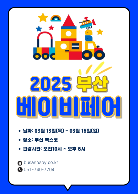 - 2025년 3월 13일부터 16일 4일간 부산 벡스코에서 2025 부산 베이비페어가 열리오니,