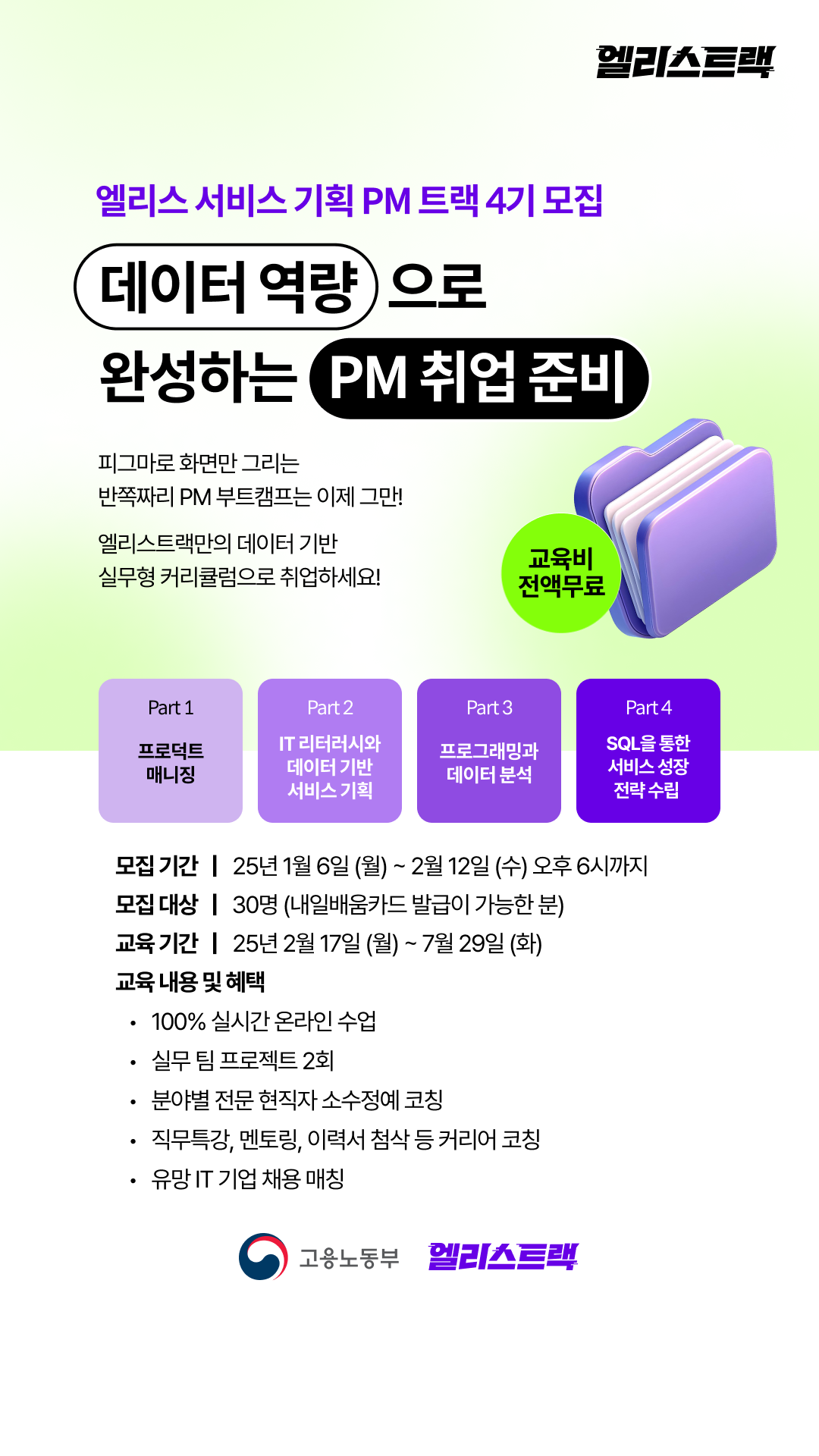 교육, 세미나 - [교육비 전액 무료] 엘리스 서비스 기획 PM 교육생 4기 모집