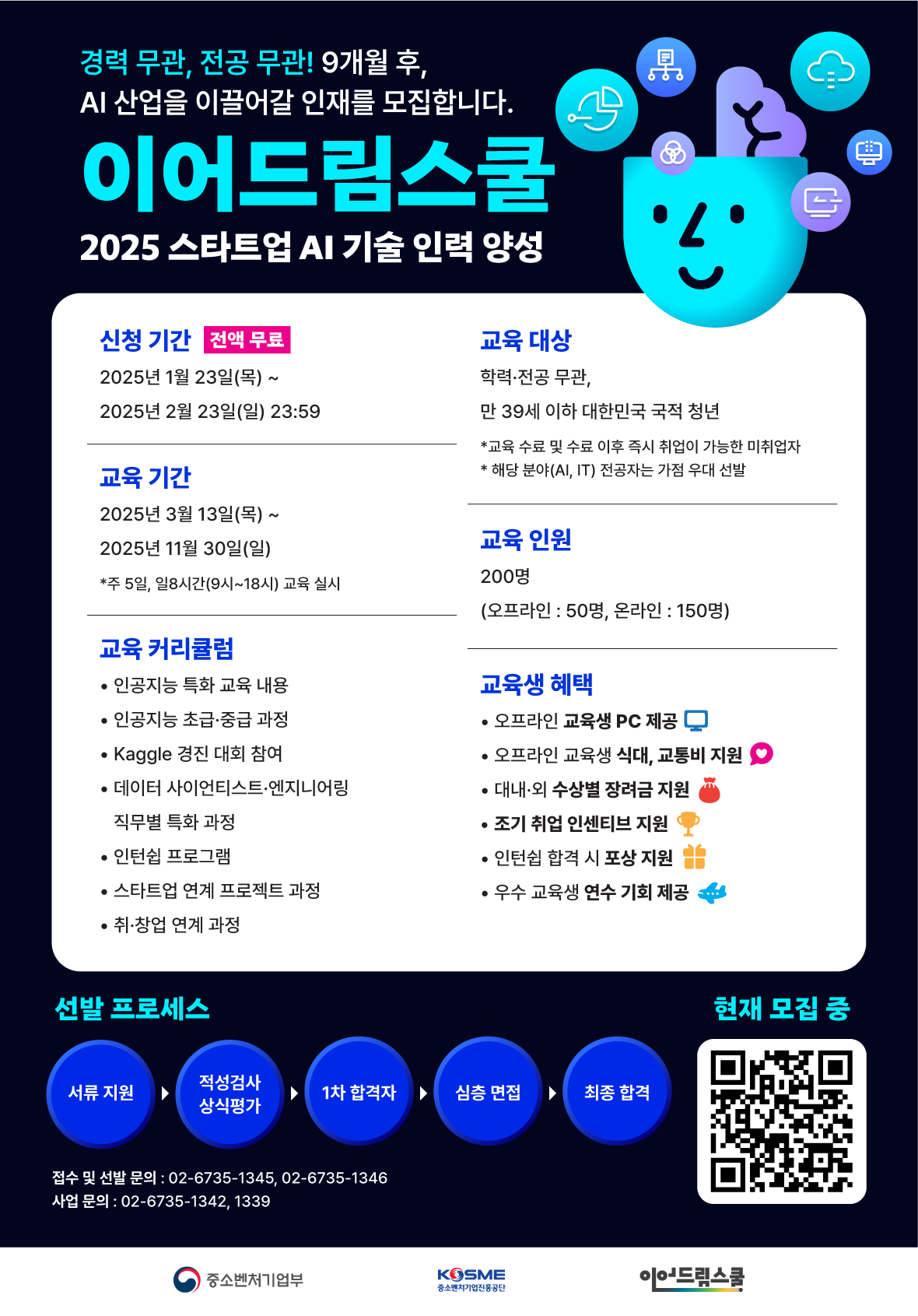 2025 스타트업 AI 기술 인력 양성 이어드림 스쿨 5기 교육생 모집