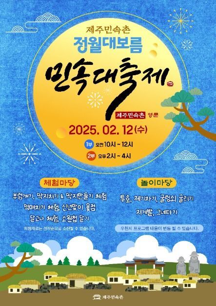 - 제주민속촌 <정월대보름 민속대축제>는 2025년 정월대보름 행사를 통해 지역주민의
