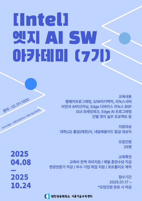 교육, 세미나 - [Intel] 엣지 AI SW 아카데미 7기 교육생 모집 (전액국비,취업연계과정)