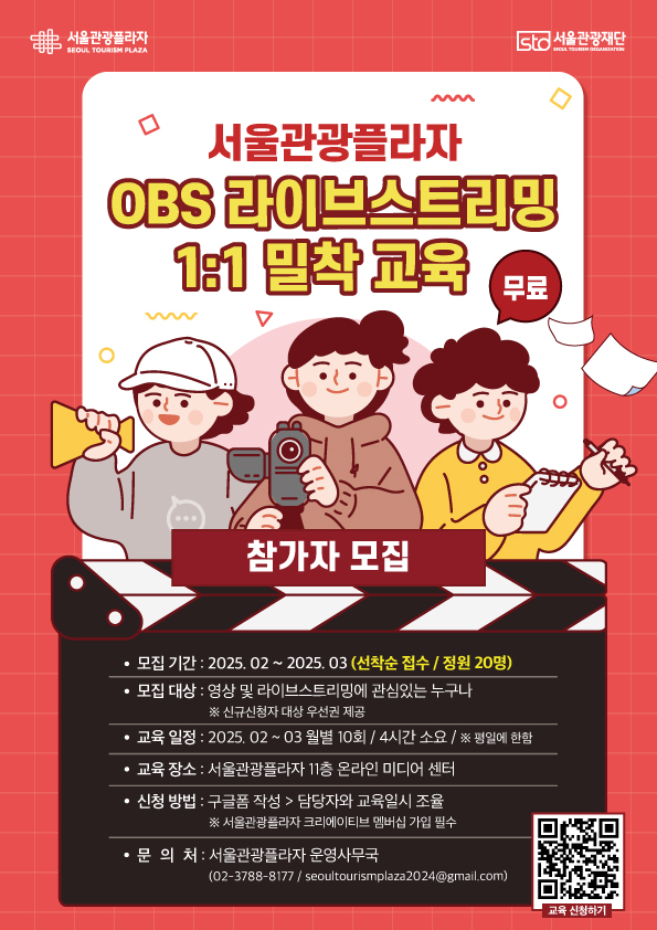 - 서울관광플라자에서 OBS 라이브스트이밍 1:1 밀착교육 교육생 모집합니다!