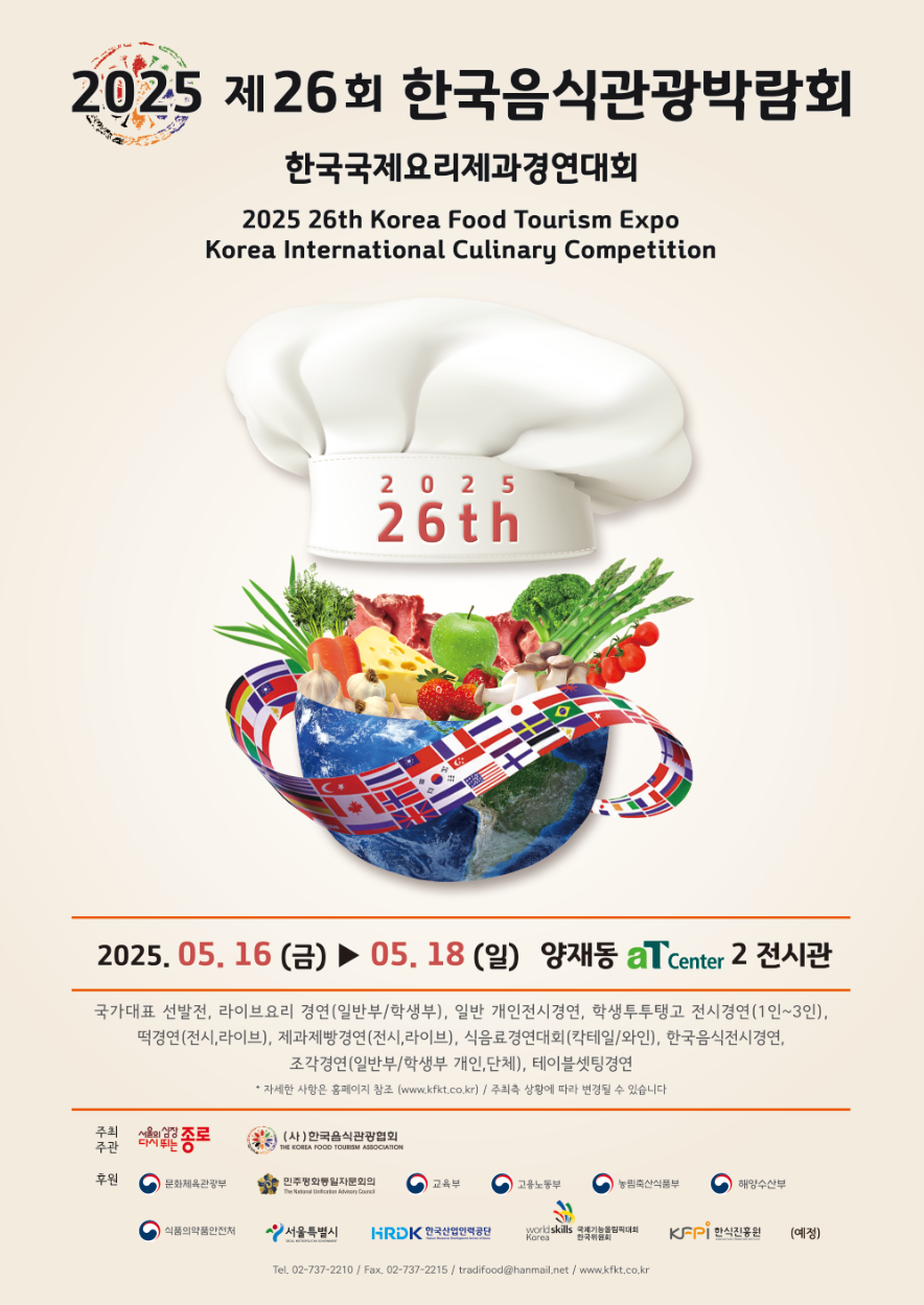 2025 한국음식관광박람회 ○ 행사개요 - 제26회 한국음식관광박람회를 개최합니다. 한국국제요리제과경연대회에서는 생동감 넘치는 라이브…, 전시,포럼,세미나,축제정보를 마이스포털 코드엠