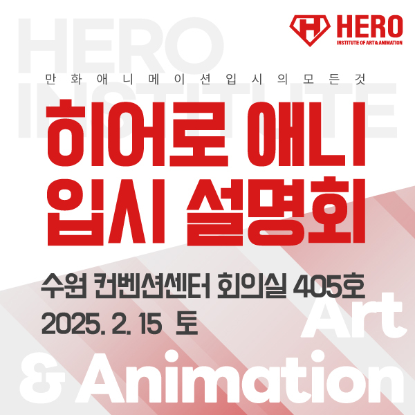 - 수원컨벤션센터에서 <히어로애니 2025학년도 입시설명회>를 개최합니다.