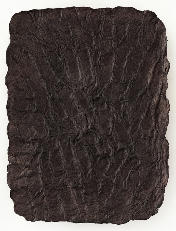 또한 작가는 바닥에 얇게 편 닥 죽 위에 직물이나 카펫을 얹어 눌러내는 방식으로 직물의 요철을 그