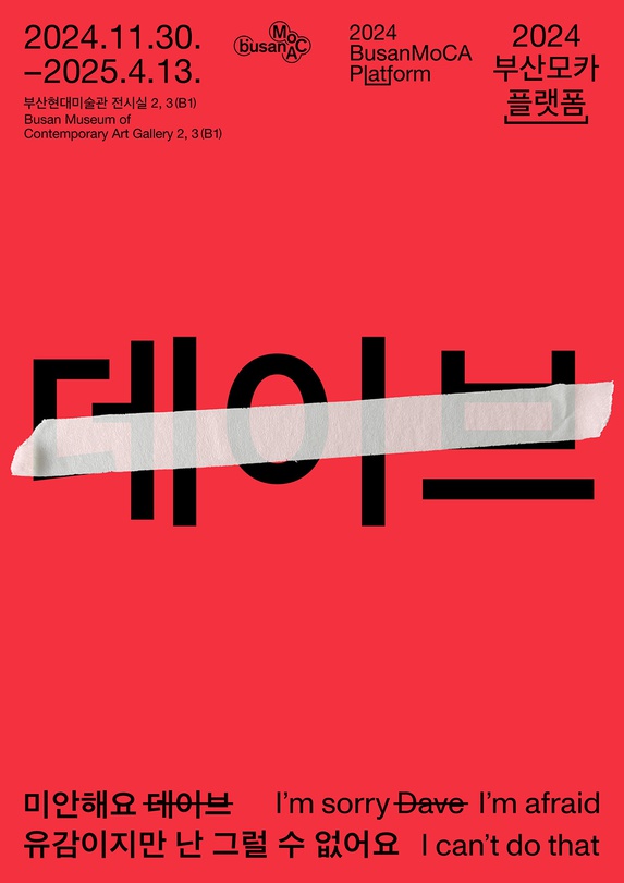 미안해요 데이브 유감이지만 난 그럴 수 없어요 ○ 행사개요 - 부산현대미술관이 2023년부터 실시한 연례전 <부산모카 플랫폼>…, 전시,포럼,세미나,축제정보를 마이스포털 코드엠에서 확인할 수