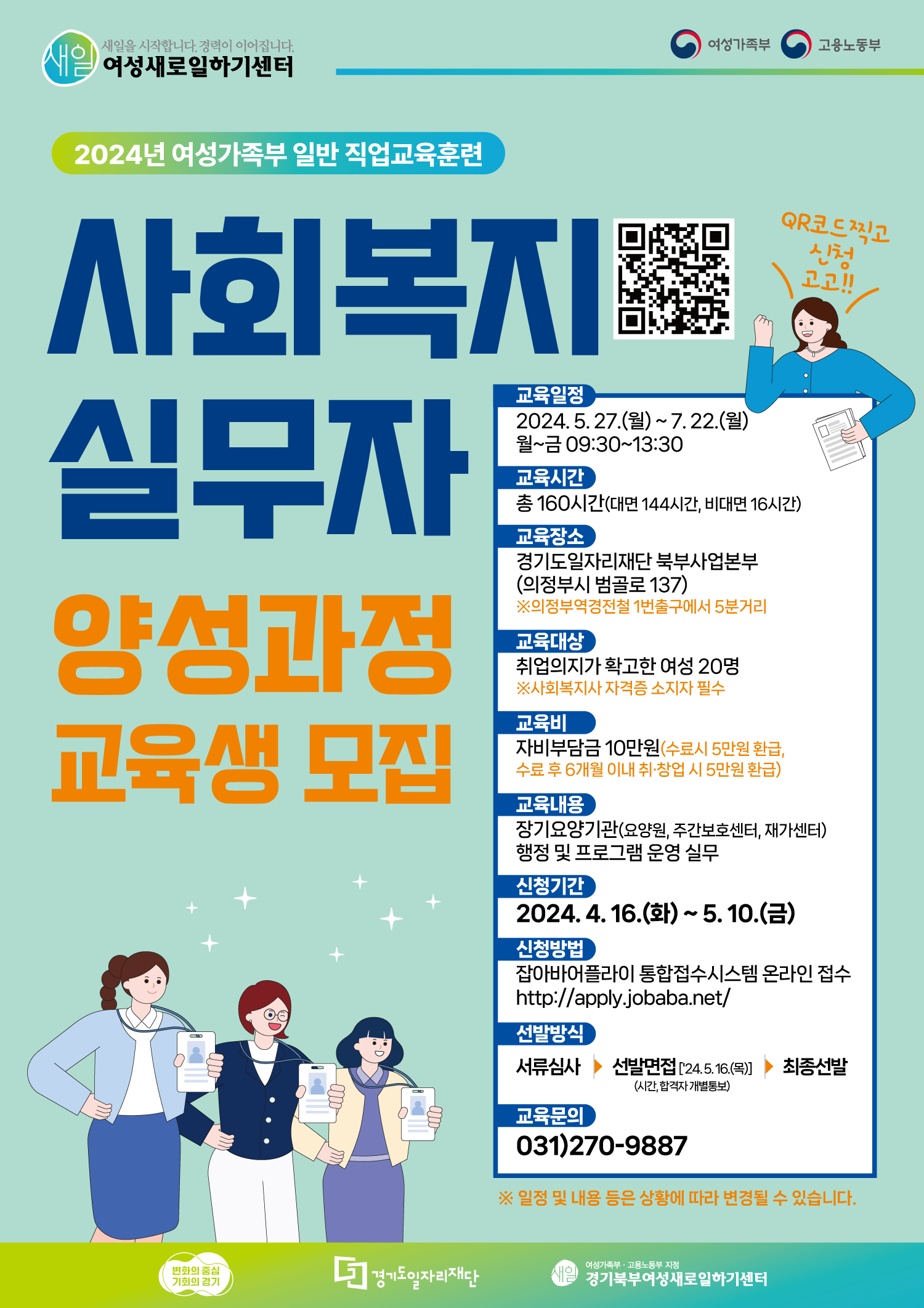 2024년 경기북부새일센터 일반 직업교육훈련 사회복지실무자 양성과정