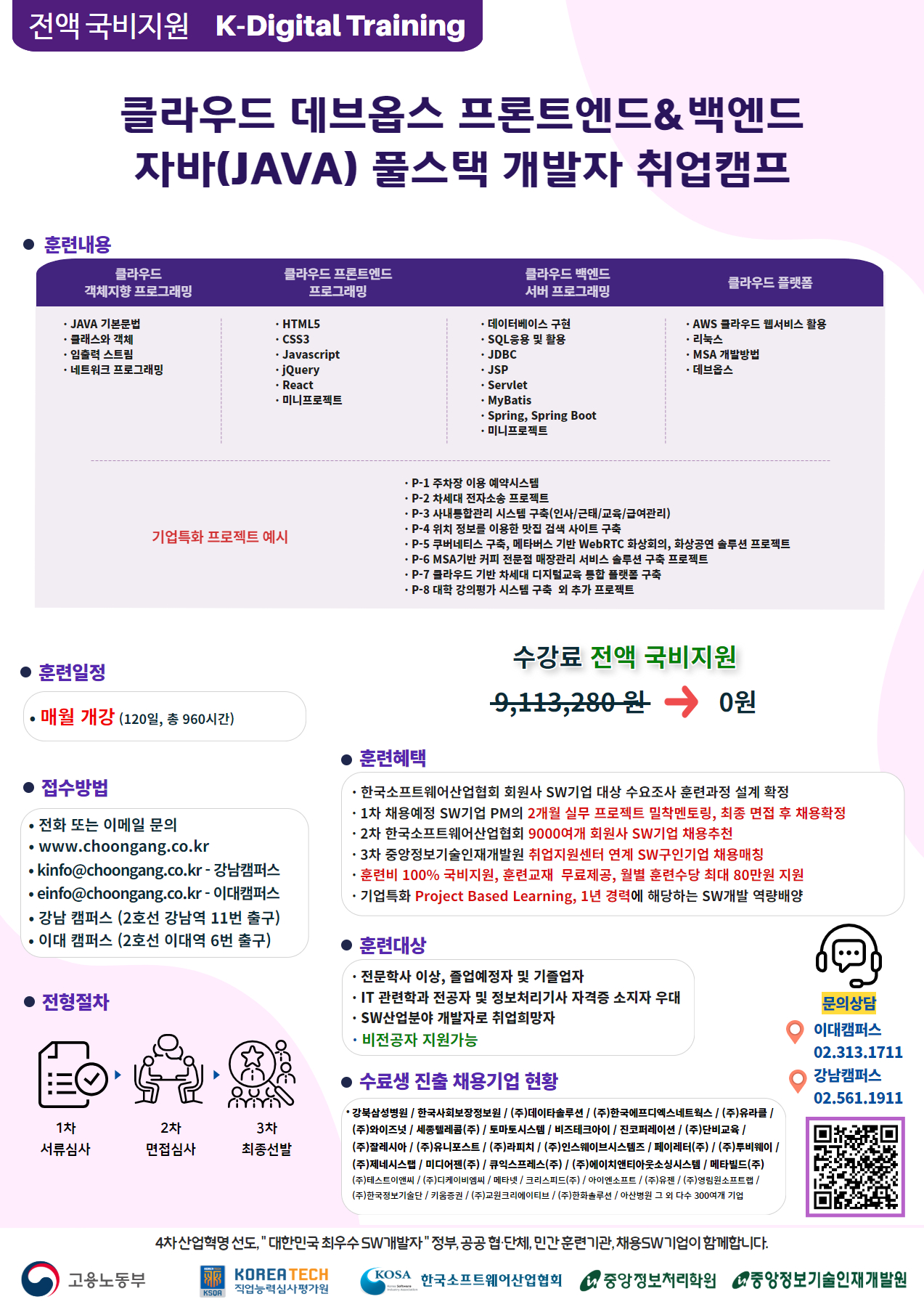 [전액 국비지원] 클라우드/자바/프론트엔드/백엔드 취업교육