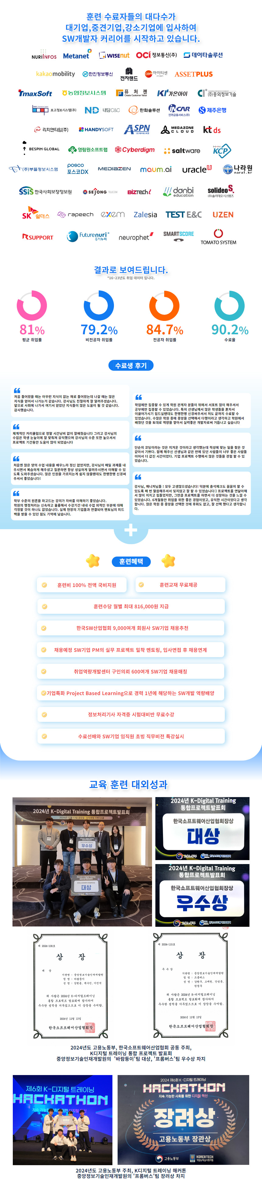 - 기업특화 Project Based Learning으로 경력 1년에 해당하는 SW개발 역량배양