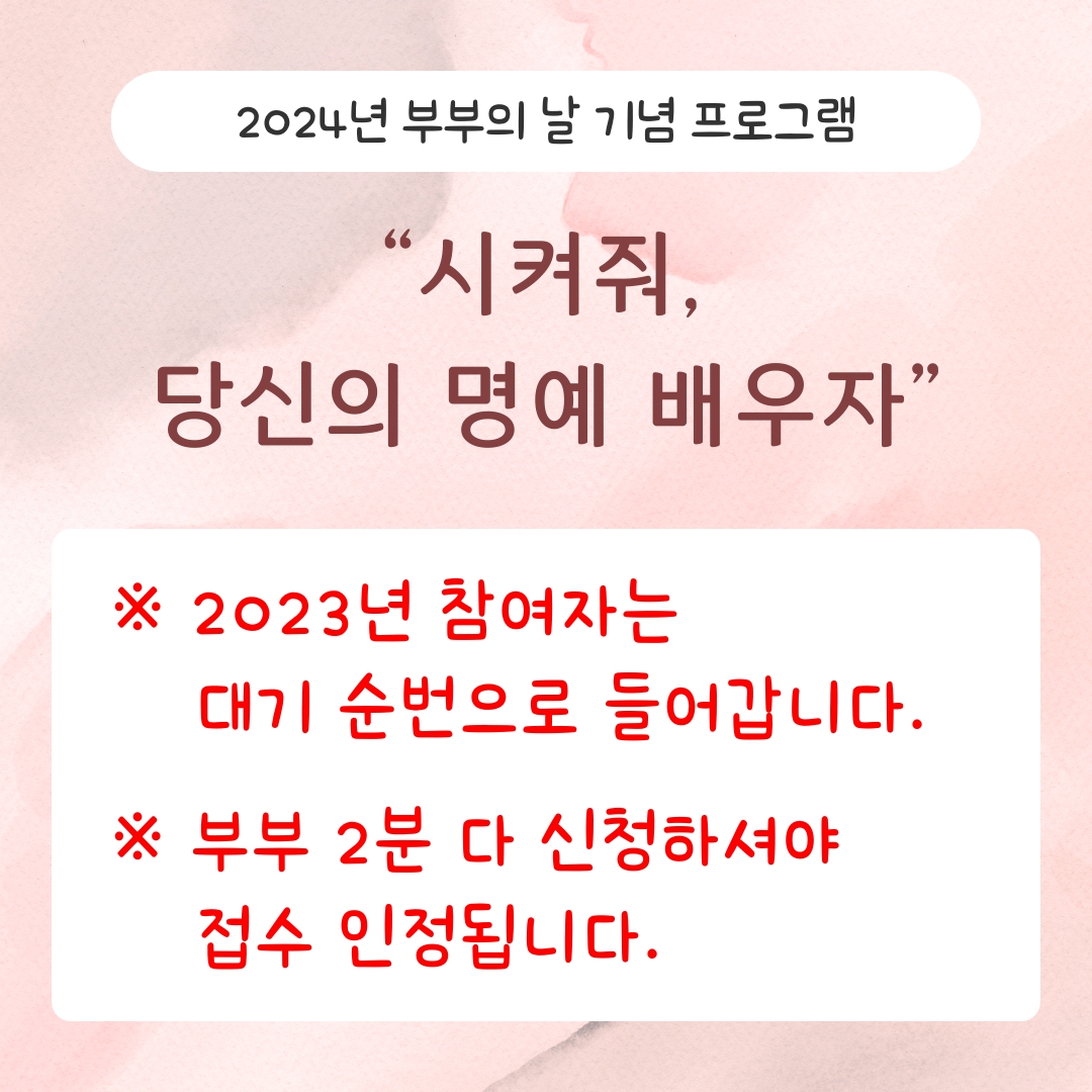 - 2024년 부부의 날 기념 프로그램 “시켜줘, 당신의 명예 배우자”