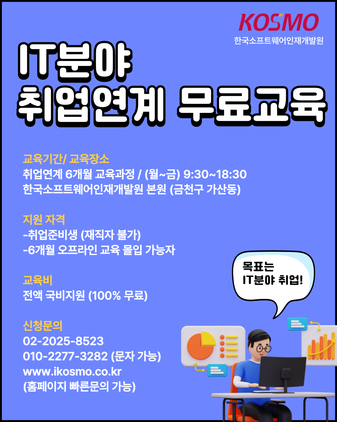 - 홈페이지 : https://www.ikosmo.co.kr (한국소프트웨어인재개발원)