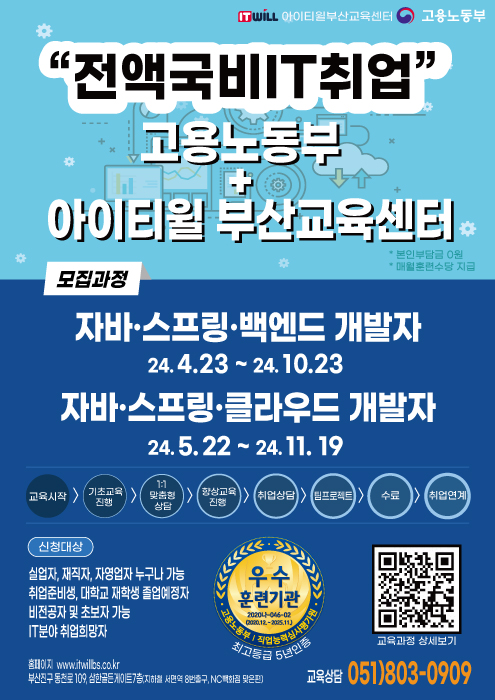 교육, 세미나 - 아이티윌 부산교육센터 자바 스프링 백엔드 개발자 양성과정 수강생 모집