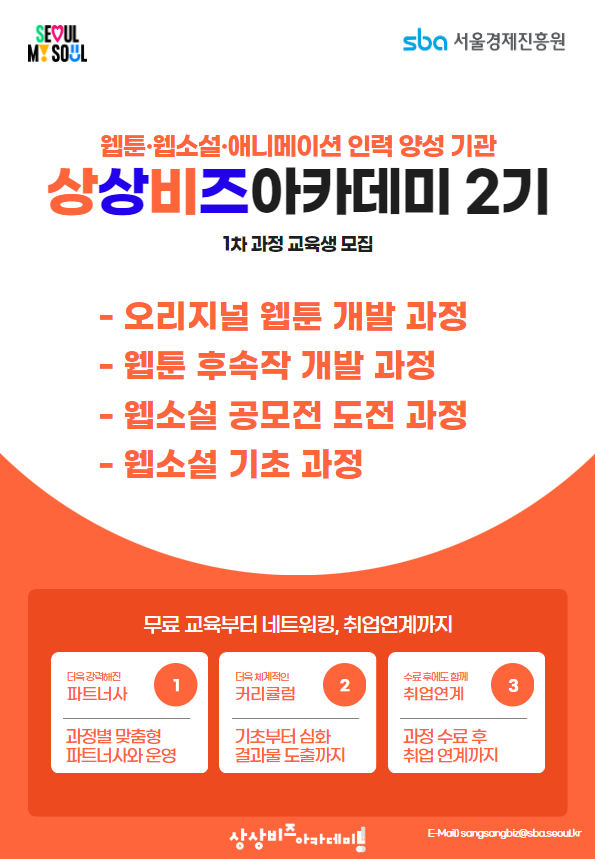 상상비즈아카데미 2기 1차과정 - 웹툰·웹소설 교육생 모집 ○ 교육개요 - [상상비즈아카데미]는 sba 서울경제진흥원에서 주관하는 …, 전시,포럼,세미나,축제정보를 마이스포털 코드엠에서 확인