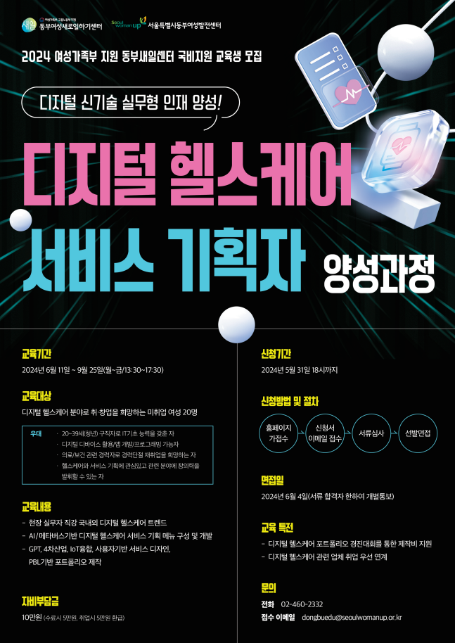 - [디지털 헬스케어 분야]로 취‧창업을 희망하는 미취업 여성 20명