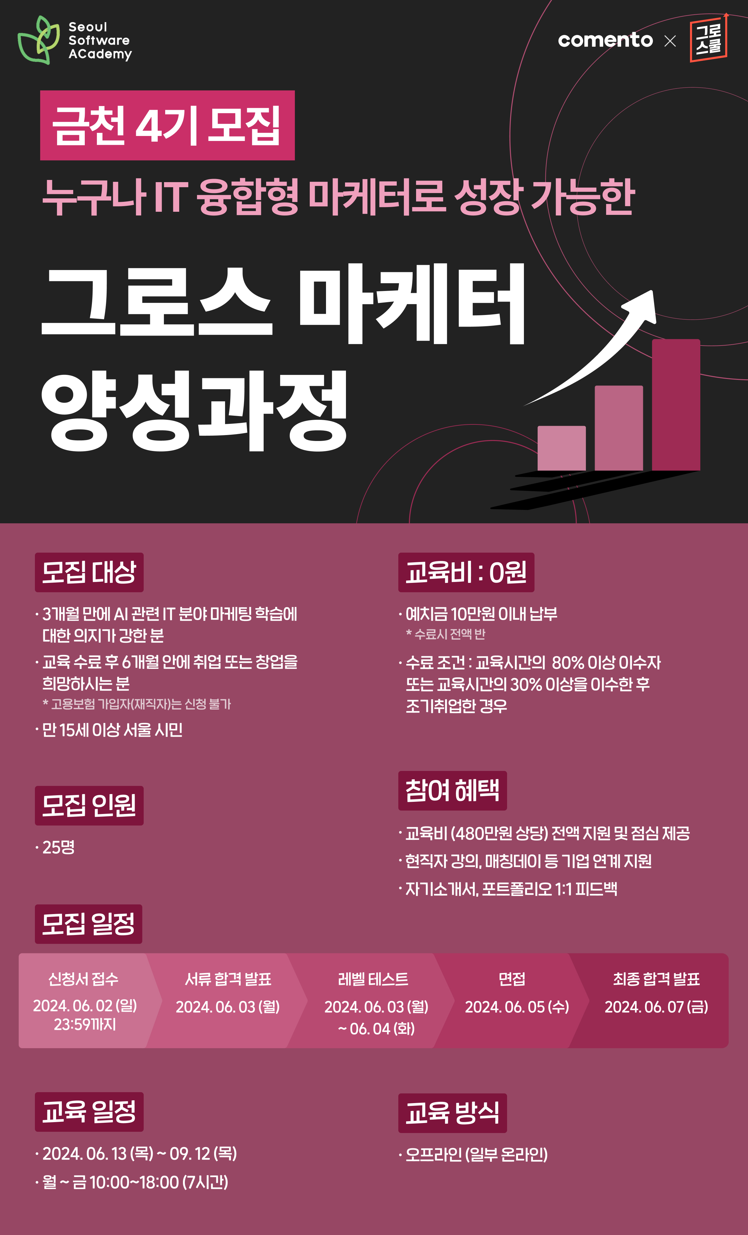 교육, 세미나 - 서울시 새싹 금천캠퍼스 그로스마케팅 과정 교육생 모집
