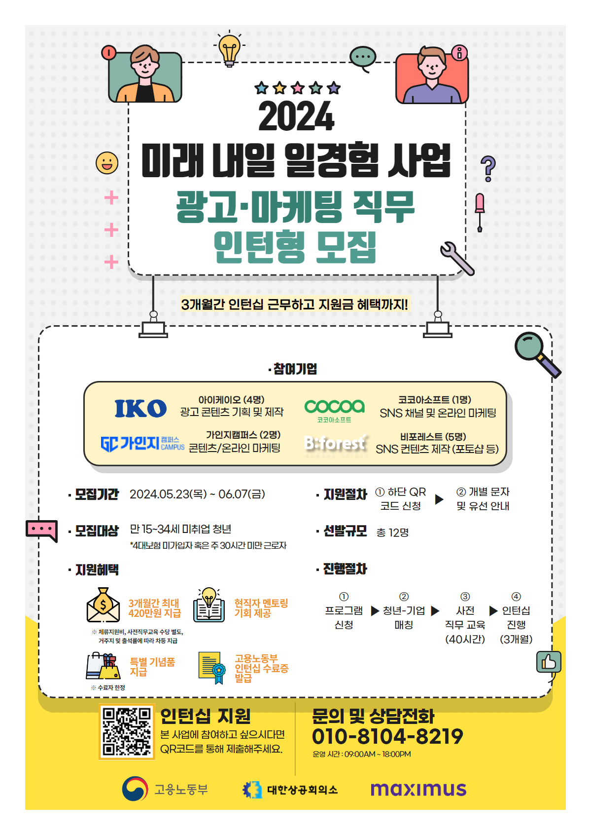 [맥시머스] 2024년 미래내일 일경험 인턴십 참여 청년 모집