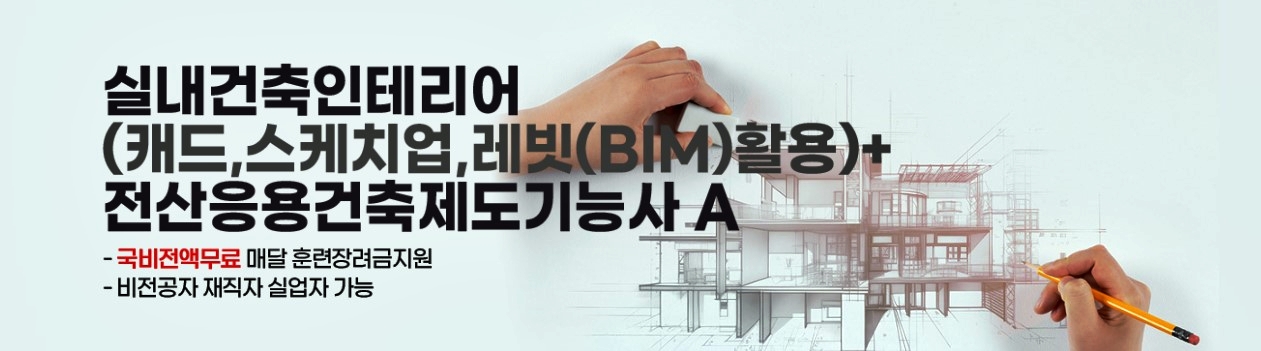 실내건축인테리어(캐드,스케치업,레빗(BIM)활용)+전산응용건축제도기능사B