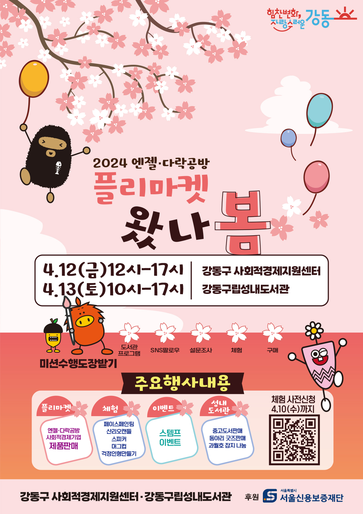 - 안녕하세요 강동구 사회적경제지원센터입니다. 2024. 4월 엔젤·다락공방 플리마켓