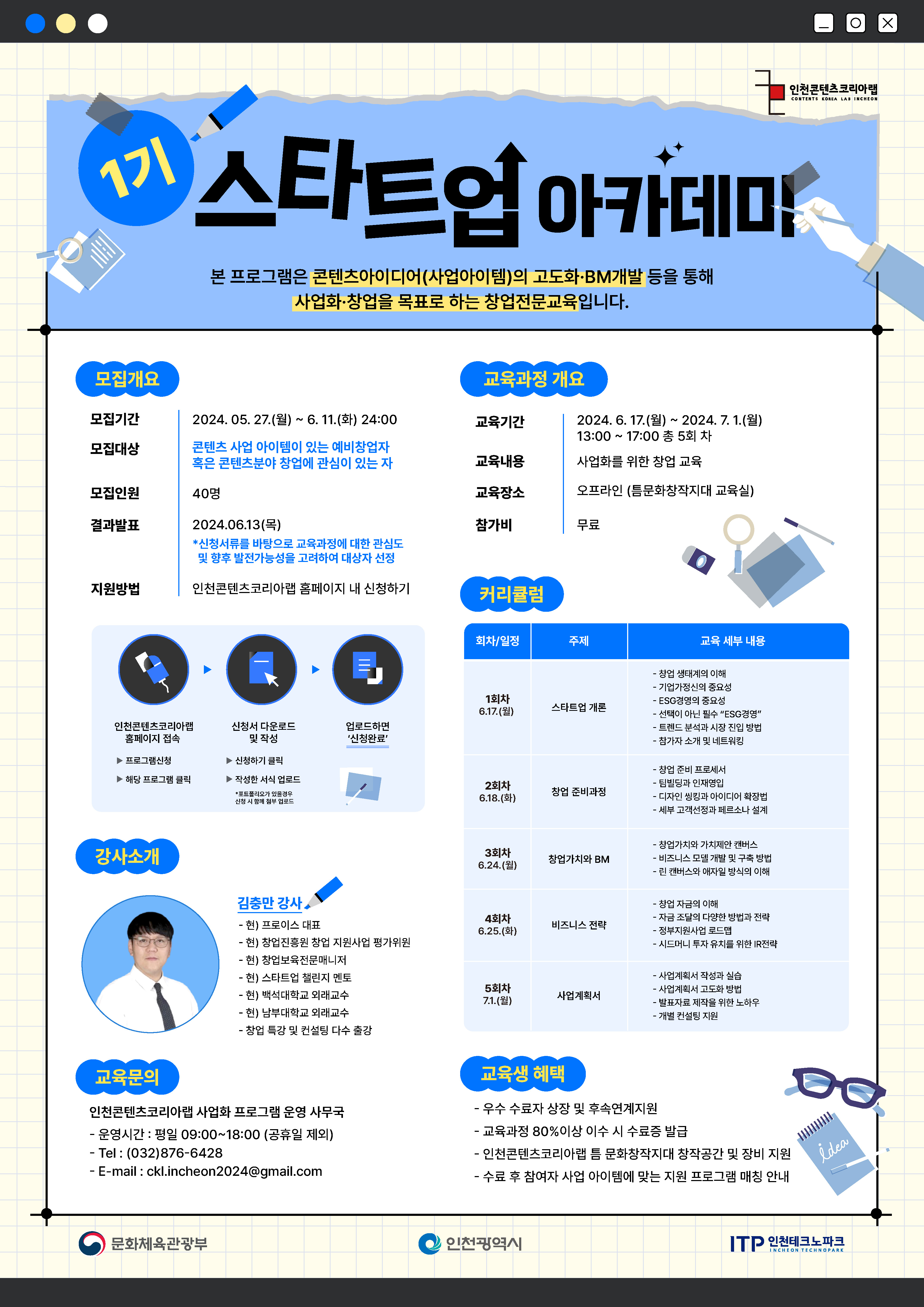 - 인천콘텐츠코리아랩 홈페이지 내 프로그램 신청 > 2024 스타트업 아카데미