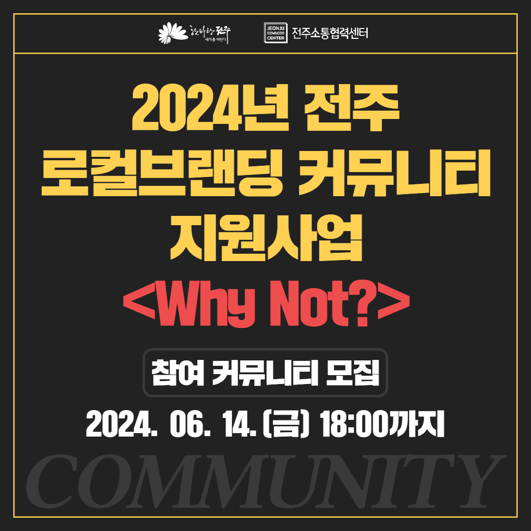 - 전주소통협력센터에서 '2024년 전주 로컬브랜딩 커뮤니티 지원사업