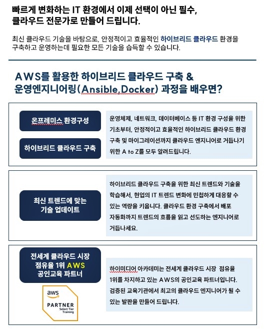 교육, 세미나 - 클라우드 국비지원 - 하이미디어아카데미 종로점