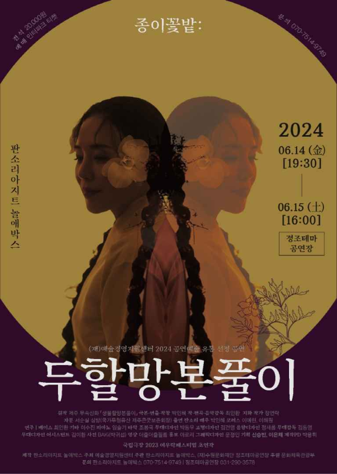협력기획공연 판소리1인극 <종이꽃밭 : 두할망본풀이> 미움과 불안,