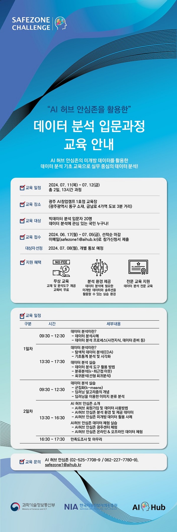 - "AI허브 안심존을 활용한" 데이터분석 입문과정 교육을 진행하오니