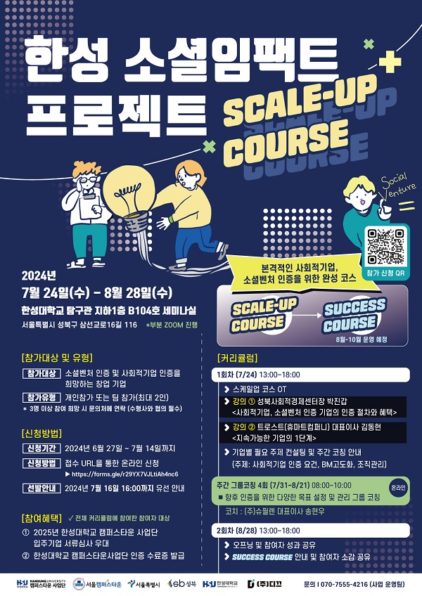 - [한성 소셜임팩트 프로젝트] 스케일업코스는 한성대학교 캠퍼스타운 사업단에서 주최하는