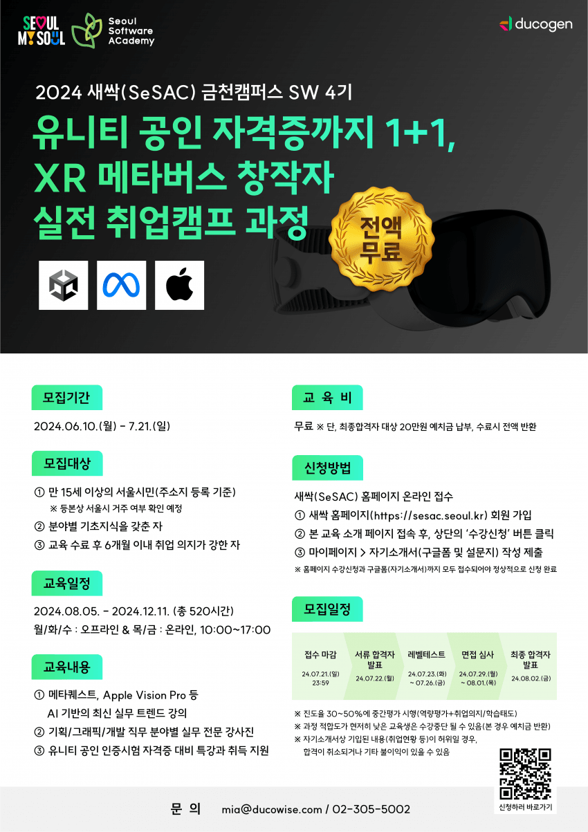 - XR 메타버스와 AI 분야에서 종합적인 능력을 갖춘 전문가가 되기 위한 과정