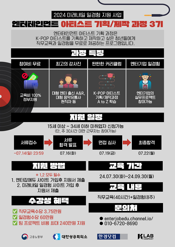 2024 미래내일 일경험 지원사업 엔터테인먼트 아티스트 기획 3기