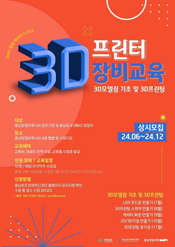 - ( 재 ) 충남창조경제혁신센터는 「3D프린터 장비 교육 과정 」 에 참여할 교육생 을