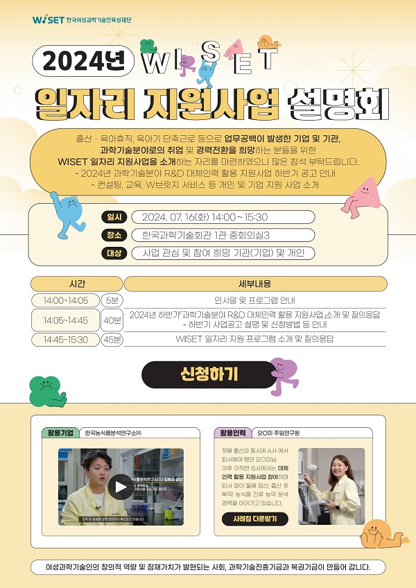 지원사업, 기타 - 2024년 WISET 일자리 지원사업 설명회 개최 (7/16)