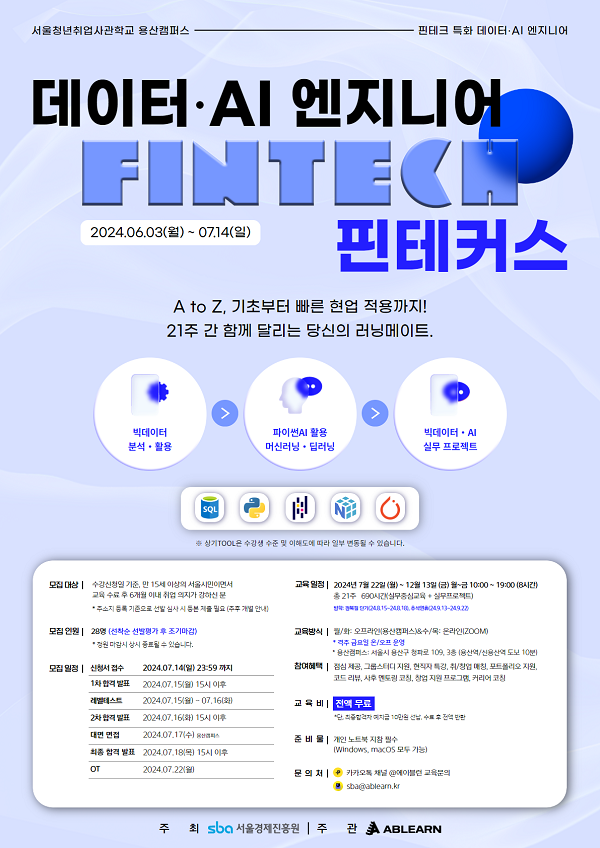 교육, 세미나 - 새싹 용산3기 데이터 AI엔지니어 과정 핀테커스
